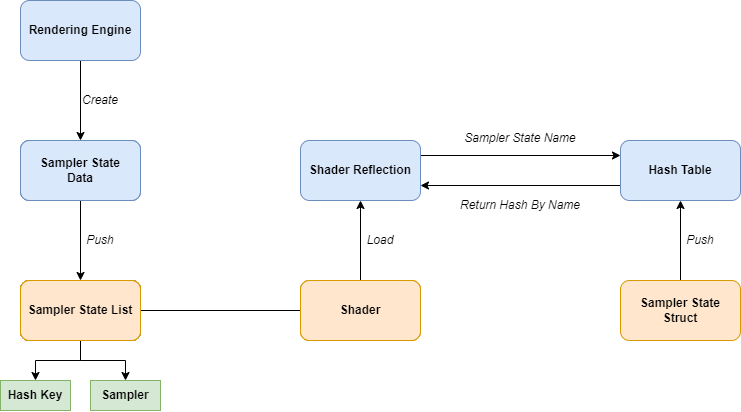 Engine 측에서 Sampler State를 생성, 1:1 대응하는 Class의 Hash_Code를 Key값으로 등록한 후