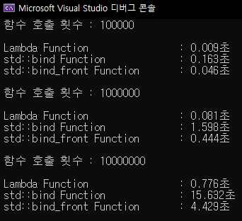 std::bind, std::bind_font, Lambda 속도 측정