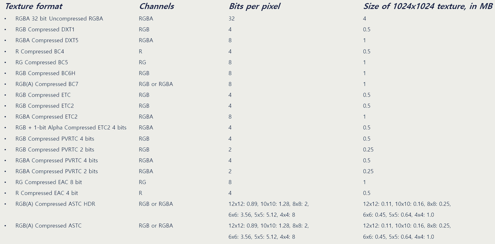 - 텍스처 압축을 어떻게든 한다 치고.. 압축 해제는 어느 시점에?