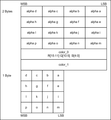 - 16 x 2-bit alpha indices