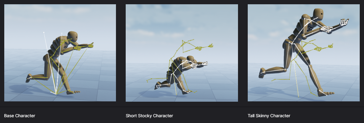 본 구조가 동일하되 Local Pose만 다른 경우 단순한 보정만 처리해준다면 아래와 같은 동일한 동작의 애니메이션 처리가 가능하다.