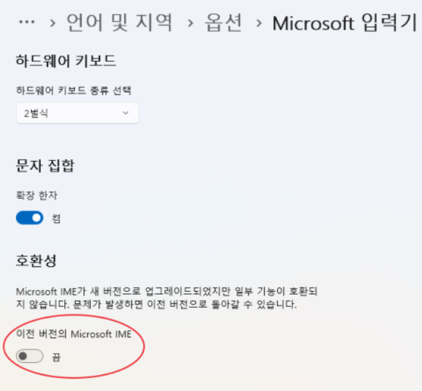 최근 PC의 OS를 Windows 11로 업데이트하면서 발견한 문제이다. Windows 11부터 IME의 처리 방식이 달라졌는데 이는 옵션에서 이전 IME로 변경도 가능하게 제공한다.