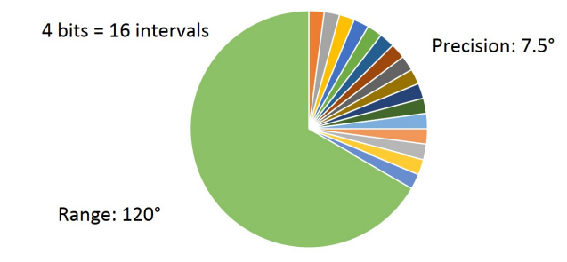 효과적인 범위 내에서 16개의 간격으로 분할할 경우 정밀도가 7.5도로 증가하며 이러한 과정을 통해 저장해야 할 최소값과 최대값을 저장해야 한다.